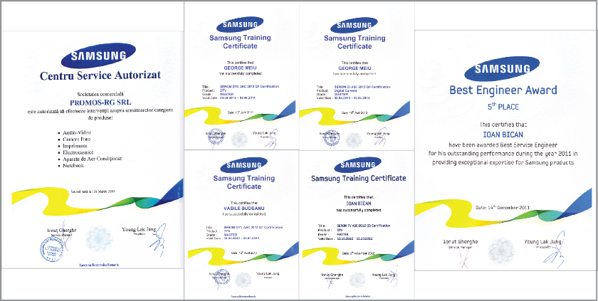 Suntem acreditati pentru service in garantie pentru toate produsele SAMSUNG...
